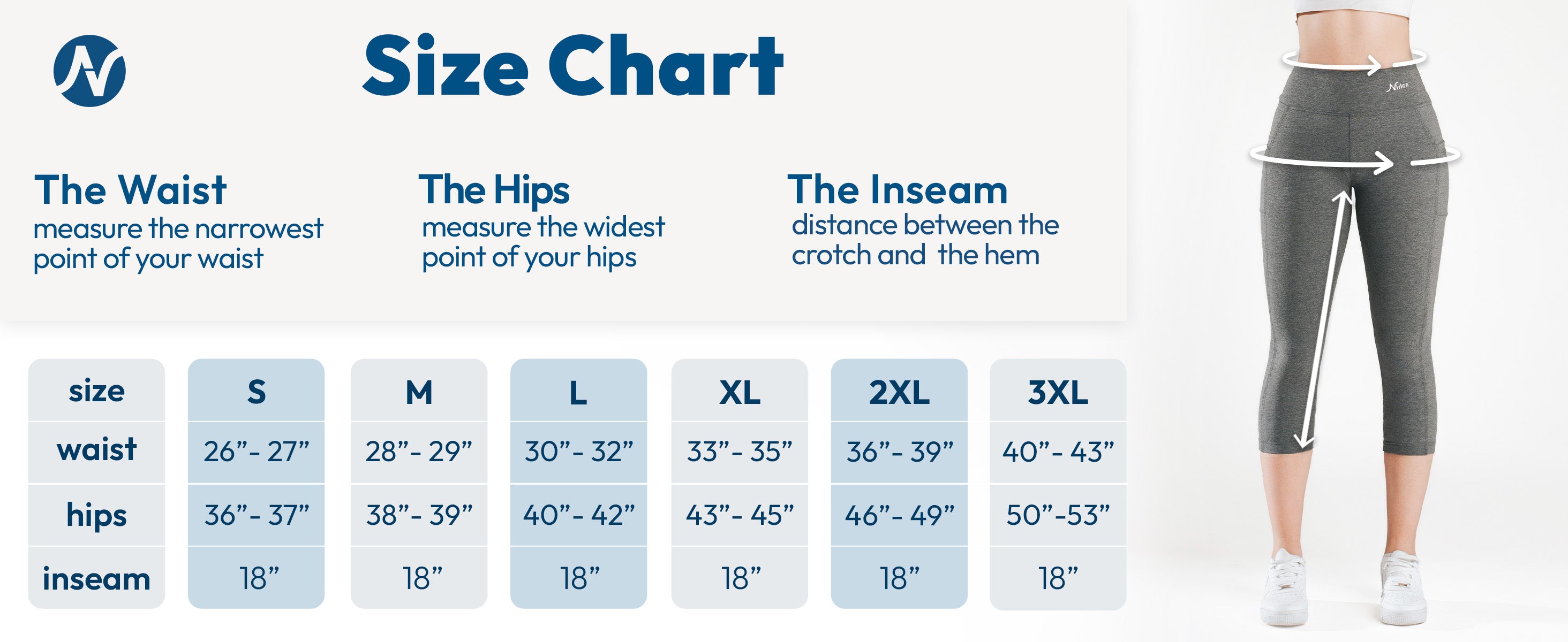 | מותניים (inches) | 21.5 | 23 | 25 | 27 | 29 | 31 | 33 | 35 | 39 | 41 | 43 |